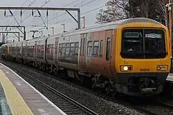 Aston is served by West Midlands Trains with regular services on both the Cross-City Line[31] and the Chase Line.[32][33] Cross-City services are operated using Class 730 Electric multiple units (EMUs).[34] while Chase Line services are operated using Class 350 and Class 730 EMUs.[34]