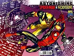 Astonishing Spider-Man & Wolverine is a 2010 – 2011 six-issue comic book miniseries published by Marvel Comics starring Spider-Man and Wolverine. The series is written by Jason Aaron, drawn by Adam Kubert and edited by Nick Lowe.[1]