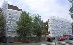 A revised planning application was submitted in December 2013. Although several elements remained the same, such as office accommodation, community facilities and a café/restaurant, the developers now included six flats in their proposal. These would be built at the top of the complex, which would rise to six storeys at the front and three storeys to the rear. No car parking would be provided, but bicycle parking was included in the new design. The city council was expected to decide on the application in March 2014,[33] and in that month granted approval[34] which remained valid as of May 2015;[35] but in December 2014 Holland sold the building to Unicity, part of Knightsbridge Student Housing. This company submitted a new planning application in May 2015 in respect of a building consisting of 73 privately rented flats, offices and community space. The proposed housing density was significantly greater than that for which permission was granted in 2014.[35] This scheme was permitted on appeal; but the building was subsequently sold on again to a company called Ktesius. Their plan for 70 luxury flats called Brighton Rox was granted approval in January 2017.[36]