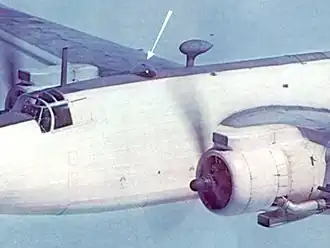 Similar hemispherical-shaped domes were also installed on some Second World War era heavy bombers for the purpose of sighting of their defensive gun turrets, particularly those that were remotely operated. Examples of such installations include the German Heinkel He 177A, which had a single forward dorsal dome to aim its remotely operated FDL 131 twin MG 131 dorsal turret, and the American Boeing B-29 Superfortress heavy bomber, which had used a dome in its complex sighting system for its quartet of remote gun turrets.[8][9] On the B-29, the bonding of the astrodome was designed so that it would generate only minimal radio interference via static electric discharges.[10]