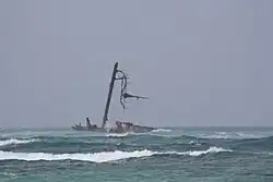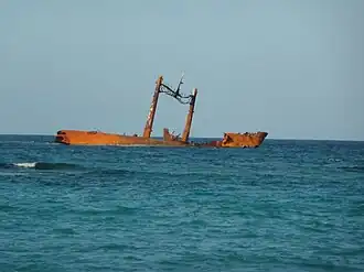 Astron was delivering 60 tons of corn to Cuba on 7 April 1978, when she ran aground at Punta Cana during a storm. However, there is no hurricane or tropical storm listed during this date in the history of the Atlantic Hurricane season of 1978.[4] This ship either hit a mine, was torpedoed, or intentionally scuttled, evidenced by the extensive ripped steel of the lower hull.[5] She broke into two distinct sections with the bow above the water and the stern underwater, with 7,330 barrels of bunker fuel reported lost in the incident. The wreck is in water 16 metres (52 feet) deep, meaning it can be visited by scuba divers.[3]