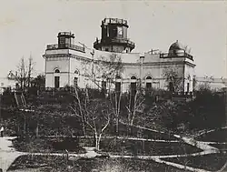 In 1837 the permanent observatory building was completed, and in June of that year the first observations were made in it. In 1838, a 9-inch refractor was installed in the fully movable main tower. The official date of birth of the University Astronomical Observatory was April 13, 1838, when permanent observations (on the Vienna Meridian Circle) began in the new observatory building.[3]