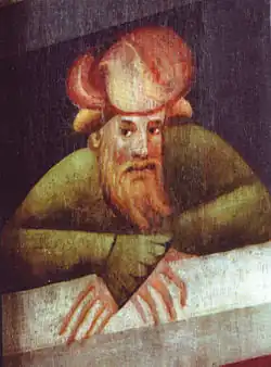 - bottom left: Ali ibn Ridwan (labelled Hali), the Islamic scholar, physician and astrologer. His banner: "Dies est elevacio solis super orizontem" (The day is the elevation of the sun above the horizon.)
