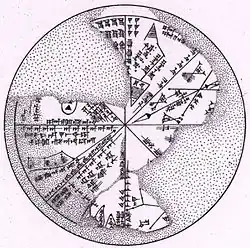 A Babylonian planisphere (7th century BCE). Babylonian astronomy was an early astronomical instrument. Its use of sexagesimals (e.g. 12, 24, 60, 360) is still being used today through having been broadly adopted for timekeeping and astrometry.[15]
