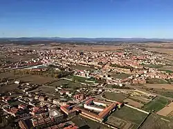 The present-day municipality of Astorga is located in the northwestern part of the Duero river basin and its surroundings present, in general, a gentle relief but with two distinct areas:[1] on the one hand a series of ESE-WEST oriented mountain ranges, with materials from the Lower Paleozoic, and on the other the plain of the Tuerto river, of Tertiary materials later covered during the Quaternary.[2] Between both areas and at the confluence of the Jerga and Tuerto rivers, the city proper was located on a promontory, at 870 m above sea level, whose profile resembles a spur, becoming smoother at its western end.