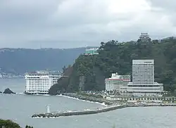 Atami Castle (熱海城, Atami-jō) is a Japanese castle replica on the summit of Nishikigaura Mountain in Atami, Shizuoka Prefecture. It is one of the most scenic spots in Atami City, offering a panoramic view of the city and southern Atami. The building hosts several museums on Japanese history. 200 sakura trees were planted in the castle's garden, which hosts a cherry blossom festival from late March to early April. First constructed in 1959, Atami castle is not a real historical site.