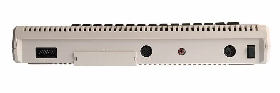 External connections include two controller ports on the right, a ROM cartridge slot on top, a coaxial RF antenna output for TVs, and a proprietary serial interface (Serial Input/Output, SIO) port on the back for "intelligent" peripherals using a custom Atari protocol and connector. Printers, disk drives, and other devices with daisy chain SIO ports connect via a single cable type. Unlike the Atari 1200XL, the 800XL features a Parallel Bus Interface (PBI) on the rear, enabling external expansion like the unreleased Atari 1090 box.[80]