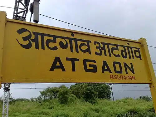 Atgaon is a railway station on the Central line of the Mumbai Suburban Railway network. Asangaon is the previous stop and Thansit is the next stop.[2]