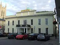 The Athenaeum is a Grade I listed building[1] and a major venue in Bury St Edmunds, England. Even before substantial rebuilding the site was used as an Assembly Rooms for the town in the eighteenth century. The building was rebuilt in 1789 and further developed in 1804 under a subscription scheme established by its new owner, James Oakes.[2] Lord Arthur Hervey founded the Athenaeum in 1853, originally operating out of Bury St Edmunds Guildhall. In 1854 the organisation moved into the former Assembly Rooms, since then the building has been known as the Athenaeum.[3]