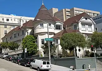 The Atherton House, also known as the Faxon Atherton Mansion, is a historic building in San Francisco, California, United States. The style of the house, a blend of Queen Anne and Stick-Eastlake, has been described as both "eclectic" and "bizarre".[4]