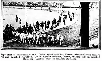 ![]() The start of the Modified Marathon race (16,000 metres) at the Stade Pershing | |