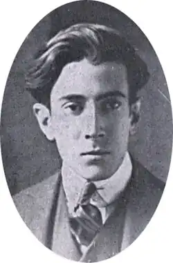 Early on, his poetic work was influenced by the Symbolism of poets such as Mallarmé, Rodenbach, and Verlaine and musicians such as Debussy, leaving two remarkable collections of pieces in this style. The first, Poemas do Sonho e da Desesperança (1925), is dedicated to his wife, Clara, and centers on the theme of mystical and spiritual love, tinged with melancholy, a sense of longing, and a desire to escape from reality, which was offset by hope and pity. The second, Poemas de Minha Cidade (1936), is one of the culminating points of Symbolism in Gaúcho (Rio Grande do Sul) lands, creating the same misty, crepuscular, and subjective atmospheres as the other work, but also adding touches of irony and humor, and revealing, as Cristiano Fretta states, "an artist aware of the universality of literature but extremely attached to the (provincial) environment in which he found himself", "which means that the artists of the time were clearly aware of what the city was then".[12] In the meantime, he had experimented with Modernism in the collection Lua de Vidro (1930),[13] which likewise remains one of the main Rio Grande do Sul contributions to this school.[3]