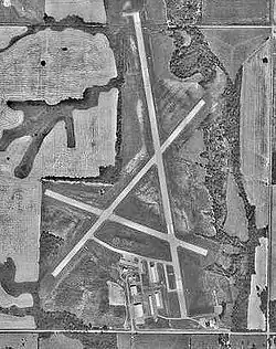 The airport saw airline flights from 1954 to 1960: Ozark Airlines Douglas DC-3s flew between Wichita, KS and St. Louis via Pittsburg, Joplin, and Springfield, MO.[4]