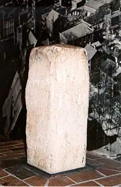 The Atlanta Zero Mile Post is a stone marker which marked the terminus of the Western and Atlantic Railroad in Atlanta, US. It was located in a disused building in Downtown Atlanta, within the Underground Atlanta Historic District, under the Central Ave. viaduct, between Alabama and Wall streets.[2][3] The Zero Mile Post was recognized with a historical marker by the Georgia Historical Commission in 1958[4] and entered into the National Register of Historic Places in 1977.[5] It was delisted in 2019.