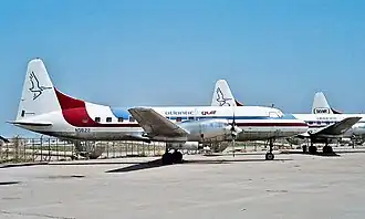 Service started with two British-manufactured Vickers Viscount four engine turboprop airliners. Atlantic Gulf was one of very few airlines in the U.S. to operate the Viscount in scheduled passenger service (Continental Airlines and United Airlines operated Viscounts during the 1960s as did Aloha Airlines and Hawaiian Airlines). The airline began with service from Miami to St. Petersburg, Florida. By early 1984, the airlines had added Convair 580 turboprops to the fleet and was operating Miami (MIA) - St. Petersburg (PIE) - Atlanta (ATL) service.[1] The fleet grew to three Convair 580s and cities such as Tallahassee and Fort Lauderdale were added to the route system.