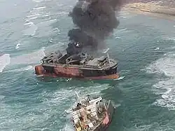MV New Carissa was a Japanese-owned bulk carrier flying the Panamanian flag of convenience that ran aground on a beach near Coos Bay, Oregon, United States, during a storm in February 1999, and subsequently broke apart. The ship's insurers declared the vessel to be a total loss. As a result, New Carissa was no longer a salvageable vessel; instead, she had effectively become a shipwreck.
