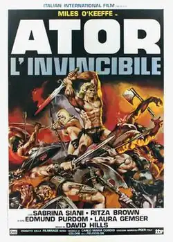 Ator, the Fighting Eagle (Italian: Ator l'invincibile 'Ator the Invincible'[4]) is a 1982 Italian "Sword-and-sandal" adventure-fantasy film directed by Joe D'Amato. It stars Miles O'Keeffe, Sabrina Siani, Ritza Brown, and Edmund Purdom. The story follows the eponymous warrior setting out on a journey to bring his wife Sandra home after her kidnapping by the Spider Cult. It was followed by the sequels Ator 2 – L'invincibile Orion, Iron Warrior, and Quest for the Mighty Sword.