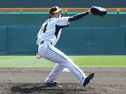 Nōmi fractured his right foot on May 2 while baserunning and was taken off the roster.[3] He underwent rehab for several months and returned on September 9, where he pitched 7 innings against the Dragons and gave up 2 runs with 10 strikeouts. On September 18, he pitched 7 shutout innings in his start against the Giants in Koshien Stadium and recorded his fourth win of the season. His winning streak against the Giants continued on the 29th when he notched his 7th consecutive victory against the Tigers' archrivals since July 2009,[4] which placed 2nd to Shigeru Kobayashi's franchise record of 8 consecutive wins.[5] Nōmi recorded one more win in September and was named the month's MVP. He finished the season 8–0 with an ERA of 2.60.
