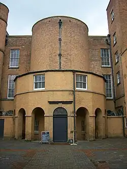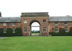 Attingham's Stables were purpose-built at the same time as the house for the first Lord Berwick. Designed by Steuart, they have pyramidal ornamentation and were purposefully sited on the approach to the house, as a demonstration of taste and wealth.[31]