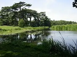 The park is a designated Site of Special Scientific Interest (SSSI) due to it being home to many rare species of invertebrates. There are seven units of SSSI around the park totalling to 470 acres (190 ha), nearly three-quarters of the entire estate. The amount of deadwood left by fallen trees around the parkland makes it the perfect habitat for a variety of different species, primarily beetles. Several of these beetle species are adapted to the ecology of ancient trees, including the flat bark beetle, Notolaemus unifasciatus, and the silken fungus beetle, Atomaria barani.[37] In 2005 a survey of the flora of the park was undertaken by Shropshire Botanical Society, which identified 68 species in the park, that had not been recorded on the last survey undertaken 1969–72. Drainage of the site had an impact on several species, with the loss of Alopecurus aequalis, Rumex maritimus and Veronica scutellata, as well as the additions of dry heathland species such as Veronica officinalis and Ulex europaeus.[38]