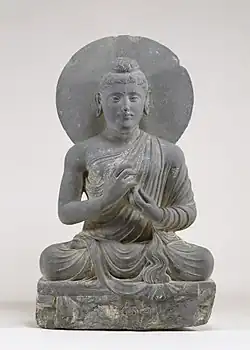 Attitude as a term of fine art refers to the posture or gesture given to a figure by a painter or sculptor.[1] It applies to the body and not to a mental state, but the arrangement of the body is presumed to serve a communicative or expressive purpose.[2] An example of a conventional attitude in art is proskynesis to indicate submissive respect toward God, emperors, clerics of high status, and religious icons; in Byzantine art, it is particularly characteristic in depictions of the emperor paying homage to Christ.[3] In 20th- and 21st-century art history, "attitude" is used most often to label one of these conventional postures; another example is the orans pose.