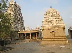 The original complex is believed to have been built by Pallavas, with later expansion by Cholas, while the present masonry structure was built during the Vijayanagara Empire during the 16th century. There are three rock-cut caves from the Pallava regime during the 10th century. The current Draupadi Amman shrine is believed to have been a Murugan temple.[2] There are inscriptions from lot of medieval and later Chola emperors like Rajaraja Chola I (985–1014), Kulothunga Chola I (1070–1120), Vikrama Chola (1118–1135), Kulothunga Chola II (1133–1150), Rajadhiraja Chola II (1166–1178), Kulothunga Chola III (1178–1218), Rajaraja Chola III (1216–1256) and Rajendra Chola III (1246–1279). There are inscriptions from Pandya kings like Maravarman Sundara Pandyan (1216–1238) and Maarvarman Vikrama Pandiyan. The contributions of the kings of the Vijayanagara Empire like Krishna Deva Raya (1509–1529), Sadasiva Raya (1542–1570) and Kampanna Udayar are also found in the inscriptions. There are also inscriptions from the Sambuvaraya period, during the regime of Sagaloga Chadravarathi Rajanarayana Sambuvarayar. In all, there are a total of 96 inscriptions in the temple compiled in the Annual Reports on South Indian Epigraphy for the year 1902 in numbers 386–391, year 1905 number 26 and year 1935 number 111–195.[4][5] Rajanarayana Sambuvaraya was a chieftain of Medieval Cholas whose contributions are documented in his inscriptions across various temples in modern-day Villupuram, Cuddalore, Tiruvannamalai and Kanchipuram districts and also in his Sanskrit work Madhuravijayam. He repaired, revived the services and inaugurated festivals of the temple.[6] In modern times, the temple is maintained and administered by the Hindu Religious and Charitable Endowments Department of the Government of Tamil Nadu.[2]