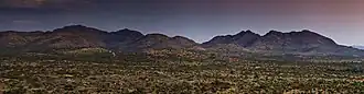 The Auas Mountains (Auasberge in German) is the highest mountain range in Namibia. Located near Windhoek, the range is 56 kilometers long, and is rich in flora and fauna. Moltkeblick 2,479 metres (8,133 ft) is the highest peak in the range, and the second highest in the country.[1][2]