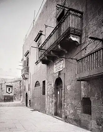 In the 1900s or before, the building was the host of the Fabbrica di Mobiglia Carmelo Seychel Carpentiere. A photo by Richard Ellis is publicly available, portraying the full facade.[3] Another photograph of the building was taken circa 1935, when part of the building was a residence.[4]