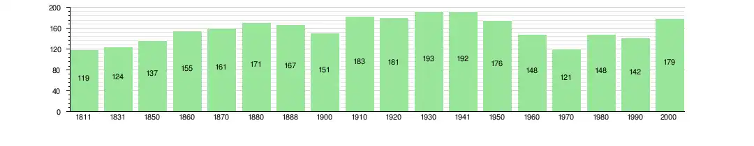 Auboranges has a population (as of December 2020) of 293.[7] As of 2008, 4.9% of the population are resident foreign nationals.[8] Over the last 10 years (2000–2010) the population has changed at a rate of 56.7%. Migration accounted for 46.2%, while births and deaths accounted for 13.5%.[9]