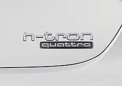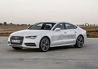 The Audi A7 h-tron quattro is a concept hydrogen/electric plug-in hybrid automobile, released by Audi AG[1] in the 2014 Los Angeles Auto Show.[2] The A7 h-tron quattro keeps the same recognizable features of the other A7 variants, but typically has "A7 h-tron" decals.