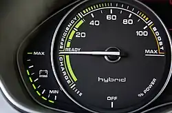 As the A7 h-tron quattro is based on the A7 production car, nearly all parts of the vehicle are visually similar. The exterior features "h-tron quattro" badges on the rear trunklid, and "A7 h-tron" decals on the doors. Interior changes include a green and orange color scheme efficiency meter in place of the tachometer in the instrument cluster, and h-tron logos included in system splash screens.