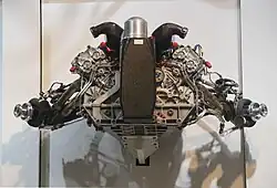 During the 2004 24 Hours of Le Mans, Baretsky met with the then-chairman of the supervisory board of Volkswagen, Ferdinand Piëch, who gave the project the go-ahead.[20] The first engine prototype was a production-based Audi V8 with a similar bore and stroke to the V12 intended for use in the race car, and its first runs on the dyno came in early 2005.[24] By the time of the R10's unveiling in December of that year, the engine was said to have completed around 1,000 hours on the dyno.[22] The engine presented several unique challenges for Audi, one of which was the construction of the engine block. Wolfgang Appel, director of Vehicle Technology at Audi, compared the task to the Apollo program, saying "In the beginning they [the Americans] did not know what was going on, nor did we!"[22] At the time, all of Audi's road car diesel engines used vermicular cast iron, and head of Audi Diesel Engine Development Richard Bauder suggested that like the road cars, the race car block should be machined from cast iron.[20] Baretsky rejected the idea on the grounds that a cast iron block was too heavy, opting for an aluminium-silicon alloy block instead.[24][22] The Bosch Motronic MS14 engine control unit (ECU) was also bespoke, with Bosch having never written software for an engine this powerful.[20] A Bosch common rail fuel injection system with piezoelectric injectors[29] delivered fuel into the cylinders at over 1,600 bar (23,206 psi), combined with a Garrett turbocharger for each bank (limited to 2.94 bar (42.6 psi)), resulted in a power output of over 650 PS (478 kW; 641 hp) between 3,000 and 5,000 rpm and a torque output of 1,100 N⋅m (811 lb⋅ft).[17]