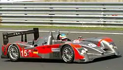 The R8 proved to be one of the most successful sports prototypes of all time, dominating the LMP900 class from its introduction in 2000, scoring 63 victories from 79 races.[15] Eventually, weight and air restrictor penalties resulted in the R8's competitors becoming increasingly closer on pace, for the 2005 edition of the 24 Hours of Le Mans the R8 was forced to carry 50 kg (110 lb) extra in ballast and had smaller air restrictors.[16] These changes to the regulations meant that the V8 in the R8 LMP was becoming obsolete.[17][18] The 2005 Le Mans Endurance Series finale at Istanbul saw the end to the R8's racing activities in Europe, however, akin to what was done with the R8R, the R8 replaced the R10 following the latter's debut at the 2006 12 Hours of Sebring until the 2006 24 Hours of Le Mans.[19][20]