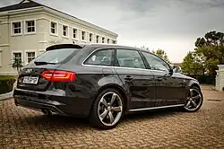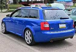A single turbocharged 2.2-litre inline five-cylinder powered the original C4 version, and a 2.7-litre twin turbocharged V6 engine was found in the B5 generation. The B6 and B7 versions shared a common 4.2-litre V8 engine, the first time that a V8 engine was placed in a compact executive car, placing it in direct competition with the BMW M3 (3.2 L inline 6) and Mercedes-Benz C32 AMG (3.2-litre supercharged V6). The B8 generation uses a supercharged 3.0-litre V6 TFSI engine and competed with the BMW 335i, BMW 335i/340i xDrive, and Mercedes-Benz C350.[2] The current B9 generation is powered by a turbocharged 3.0-litre V6 TFSI engine, with rivals including the BMW M340i xDrive and Mercedes-Benz C450 AMG/Mercedes-AMG C43 4MATIC.[4][5]