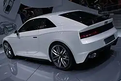The Audi quattro concept is a concept car produced by Audi and presented at the Paris Motor Show in 2010. It commemorates the 30th anniversary of the original Audi Quattro and the Audi quattro four wheel drive system. Based on the Audi RS5, it features a modified 2.5L five-cylinder TFSI engine and the sixth generation of quattro transmission.[1] It had been reported that Audi were considering a limited production model (200–500 cars) based on the quattro concept,[2] but the project was shelved in 2012.[3]