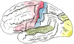 The auditosensory cortex is the part of the auditory system that is associated with the sense of hearing in humans. It occupies the bilateral primary auditory cortex in the temporal lobe of the mammalian brain.[1] The term is used to describe Brodmann areas 41 and 42 together with the transverse temporal gyrus.[2] The auditosensory cortex takes part in the reception and processing of auditory nerve impulses, which passes sound information from the thalamus to the brain. Abnormalities in this region are responsible for many disorders in auditory abilities, such as congenital deafness, true cortical deafness, primary progressive aphasia and auditory hallucination.