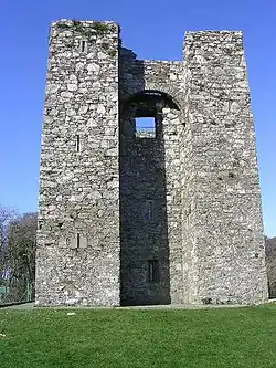 Audley's Castle consists of a tower set within a yard (technically known as a bawn) which is enclosed by a thin wall, with a simple gate.[4][5][6][7]