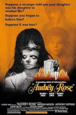 Audrey Rose is a 1977 American psychological horror drama film directed by Robert Wise and starring Marsha Mason, Anthony Hopkins, and John Beck. Its plot follows a New York City couple who are sought out by a stranger who believes their adolescent daughter is a reincarnation of his deceased one. It is based on the 1975 novel of the same name by Frank De Felitta, who also adapted the screenplay.