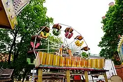 Next to the area of the Standl is a second one, where there are typical fairground rides. Until including 2019 there also used to be a small Ferris wheel, called the Russenrad (Russian's wheel). Visitors find a chairoplane, a child's roundabout, a swing boat, a horse riding track, dodgems and shooting galleries. There are also various takeaways and a beer tent which offers typical Bavarian specialities like the famous and much-beloved Steckerlfisch.