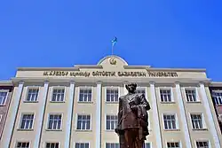 The M. O. Auezov South Kazakhstan State University (Kazakh: М. О. Әуезов атындағы Оңтүстік Қазақстан мемлекеттік университеті, romanized: M. O. Äuezov atyndağy Oñtüstık Qazaqstan memlekettık universitetı) also known as Mukhtar Auezov South Kazakhstan University, is a multidisciplinary higher educational institution in the city of Shymkent, which provides training in 76 technical and humanitarian specialties. It was founded in 1943.