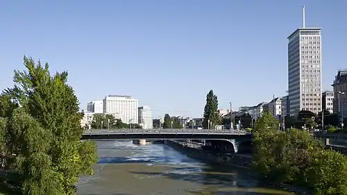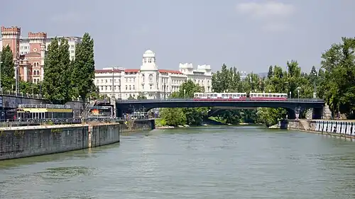 The Augartenbrücke is a bridge that crosses the Donaukanal in Vienna, which connects the 9th district (Alsergrund) and the 1st district (Innere Stadt) on the southwest side of the canal with the 2nd district, Leopoldstadt, on the northeast side. There has been a bridge on the site since 1782.