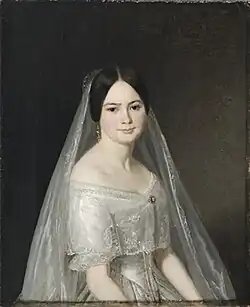 Altogether, he presented over 150 portraits at the Charlottenborg Spring Exhibition, including several of the Royal Family: Caroline Amalie of Augustenburg (three times), Prince Ferdinand, Princess Caroline and Prince (later King) Christian. In addition to these portraits, his most notable include those of Baron Carl Frederik Blixen-Finecke, who was the grandfather-in-law of Karen Blixen, General Gerhard Christoph von Krogh, and the history painter J.L. Lund.[5][6]