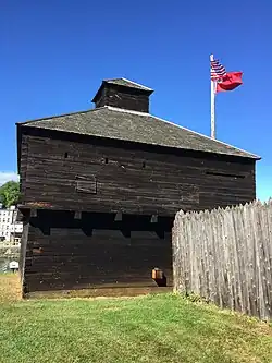 During the height of the French and Indian War, in 1754, the English colonists built a blockhouse named Fort Western at Cushnoc on the eastern bank of the Kennebec River. It was intended as a supply depot for Fort Halifax upriver, as well as a regional defense from French attack.[14] Later, during the American Revolutionary War, Benedict Arnold and his 1,100 troops would use Fort Western as a staging area before continuing their journey up the Kennebec to the Battle of Quebec.