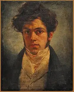 Auguste-Hyacinthe Debay was born in Nantes, France on 2 April 1804. His father, Joseph Jan Baptiste de Bay, 1829, was an eminent sculptor who worked in Paris and locally in Nantes.[1] Debay learned sculpting from his father at an early age, but started his career as a historical painter.[2] On August 28, 1817, he was admitted to the Ecole des Beaux-Arts and exhibited his first portraits to The Salon at the age of thirteen.[2] After studying under Gros, he obtained the Prix de Rome in 1823.[3] Soon after this he gave up painting for sculpture, which he studied under his father, and in which he was successful. Some of his historical paintings are displayed at the Versailles.[2]