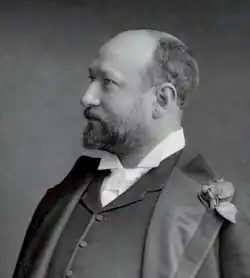 By 1888 Harris was so closely identified with his theatre that he was popularly known as "Druriolanus".[4] He remained in charge at Drury Lane for the rest of his life, but having had to contend with the rival opera seasons of the Royal Italian Opera House, Covent Garden (run by Antonio Lago) and Her Majesty's Theatre (run by Mapleson), he concluded that "in London there is room for but one operatic enterprise at a time", and that he should take over Covent Garden.[26] He assembled a syndicate of influential backers including Lord Charles Beresford, Earl de Grey and Henry Chaplin and took over the lease of the house in early 1888.[27] From May to July he presented a ten-week season with Luigi Mancinelli and Alberto Randegger as conductors and 21 leading singers including Emma Albani, the de Reszkes, Hauk, Nordica, and Nellie Melba in her London debut.[28] The repertoire consisted of 19 operas, beginning with Lucrezia Borgia and ending with Les Huguenots.[n 4]