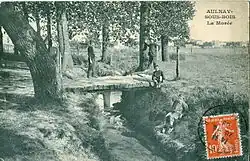 The location previously bore the names Aunay, Aunais, Anay, Aunoye, Aulnaye, Aulnay-la-Fosse, Aulnay-en-France (15th century), becoming Aulnay-lès-Bondy (i.e. "Aulnay by Bondy") in 1787. The commune was renamed Aulnay-sous-Bois (i.e. "Aulnay under the woods") on 5 January 1903 in reference to the ancient Forest of Bondy. Other nearby commune names (Clichy-sous-Bois, Les Pavillons-sous-Bois, and Rosny-sous-Bois) also refer to the same forest.[6]