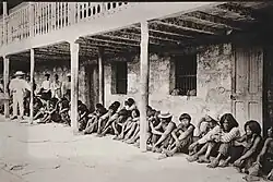 Edward Crichlow and Evelyn Batson described the "double cepo" in their depositions to Casement. Batson knew this device was constructed by Crichlow and he witnessed the imprisonment of children with the "double cepo" as well as the flagellation of children while interred there.[39][40] This device employed at Santa Catalina as late as May of 1908.[41] Casement described the double cepo in his 1910 report, he wrote: