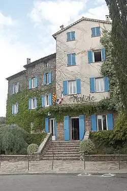 Auribeau-sur-Siagne is a medieval village dating from the 11th century located some 10 km north-west of Cannes and 6 km south-west of Grasse. Perched on a rocky spur, the village overlooks the Siagne river. Access to the commune is by road D9 from Pégomas in the south-east which passes north through the eastern part of the commune and continues to Grasse in the north. The village, which is in the south of the commune, is accessed by local roads. The commune is served by the Sillages bus network Route 29 (Pégomas - Grasse) that has nine trips per day on weekdays.[3] There are extensive residential urban areas in the commune with the areas of Le Gabre, Les Vayoux, Le Moulin Vieux, Carel, and Le Couloubrier. The rest of the commune is forested with a few small patches of farmland.[4]