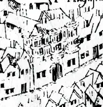 Cromwell's property was arguably the most significant, as it played an important role both in his own downfall and in the wider fate of the friary. The first house he occupied there lay to the west of the churchyard and immediately north of Cavalcante's tenement and warehouse.[29] It was a substantial property, with fourteen rooms arranged in three three-storey wings with an attached garden.[30] It is not clear when he moved in, but his wife was certainly living there by 1525 and there are indications that he may have been living in the area as early as 1522.[29]