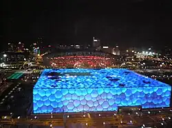 Many of the venues were designed by Australian companies. One of the iconic venues ‘The Water Cube’, was designed by Australian companies PTW Architects, ARUP Aust., Anti Wave International CSCEC.[15] Other facilities used by for the Paralympics included the Archery, Hockey and Tennis venues which were all designed by Bligh Voller Nield.[15] Many other Australian companies also contributed to the design and building of facilities.